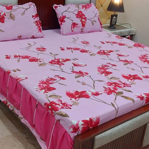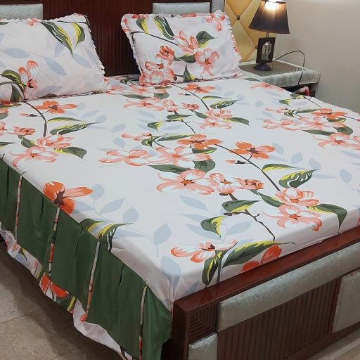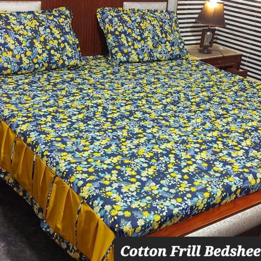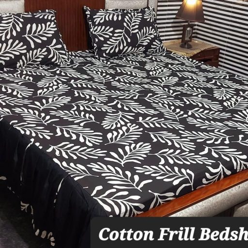 3-Piece Pure Cotton Stitched 2-Sided Frill Bedsheet Set Luxurious Comfort & Elegance