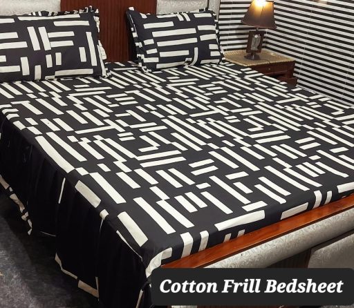 Transform your bedroom into a haven of elegance and comfort with our exquisite 3-piece pure cotton stitched 2-sided frill bedsheet set. Crafted from premium quality cotton, this bedsheet is designed to offer unparalleled softness and breathability, ensuring a restful night’s sleep.