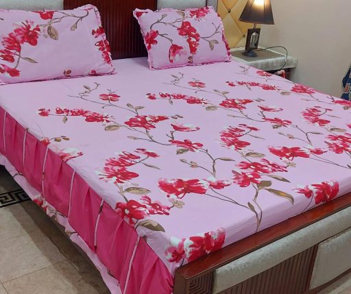 Transform your bedroom into a haven of elegance and comfort with our exquisite 3-piece pure cotton stitched 2-sided frill bedsheet set. Crafted from premium quality cotton, this bedsheet is designed to offer unparalleled softness and breathability, ensuring a restful night’s sleep.