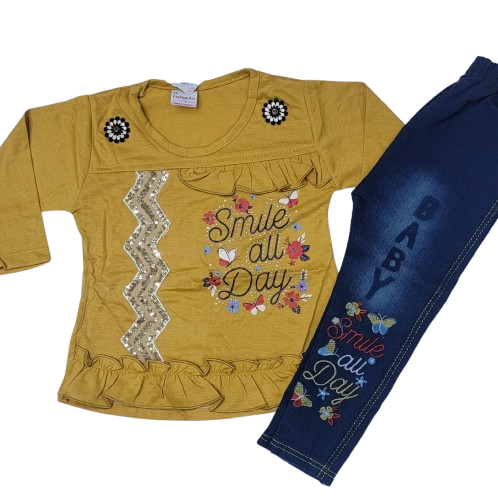 The branded shirt features a contemporary design that keeps your child on-trend, whether they’re at school, family gatherings, or casual outings. Paired with the Jarsi Jean’s, which offer a comfortable fit and modern style, this set is ideal for active kids who need durability and fashion combined.