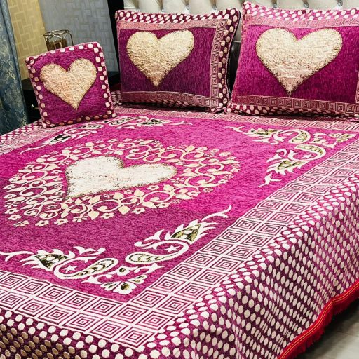 Transform your bedroom into a haven of luxury with our exquisite 4-piece Velvet Jacquard Bedsheet Set, perfect for king-size beds. This set includes a spacious 90×100 inch bedsheet, two 19×29 inch pillow covers, and a 15×15 inch cushion cover, all made from high-quality velvet jacquard fabric that promises a sumptuous feel and a sophisticated appearance.