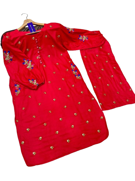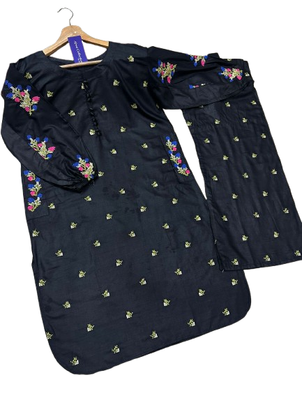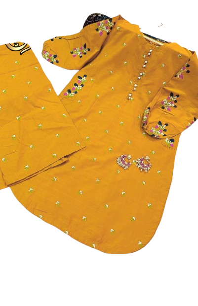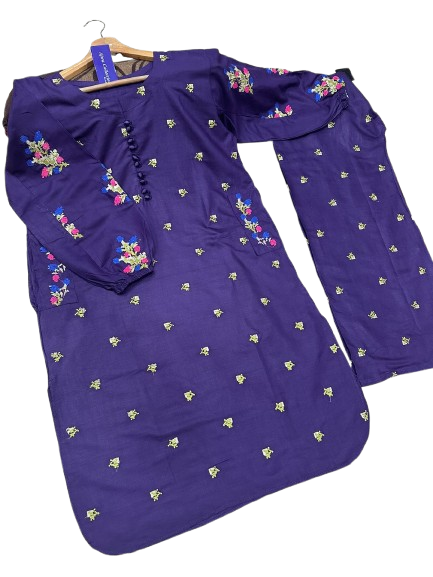 Introducing the Mina Collection by A&T, where tradition meets contemporary fashion. This 2-piece ensemble includes a beautifully designed kurti with front stitch buttons, adding a touch of sophistication. The kurti also features intricate embroidery on both sides, enhancing its visual appeal. Paired with a matching embroidered flapper, this set is perfect for any occasion, from casual outings to festive celebrations. The comfortable and stylish design ensures you look and feel your best. Available in various sizes, this collection is designed to cater to your unique style and preferences.