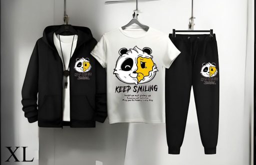 Enhance your winter wardrobe with the Winter Collection Complete Suit_3 in 1 Pack. This versatile set is designed for those who value both style and comfort. It includes a sleek black zipper jacket, three mix-coloured t-shirts for variety, and a pair of classic black trousers.